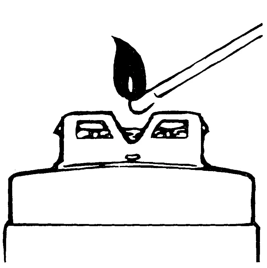 火口をはめカイロを立てて持ち、マッチかライターの炎を上から